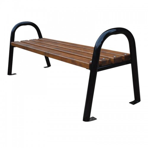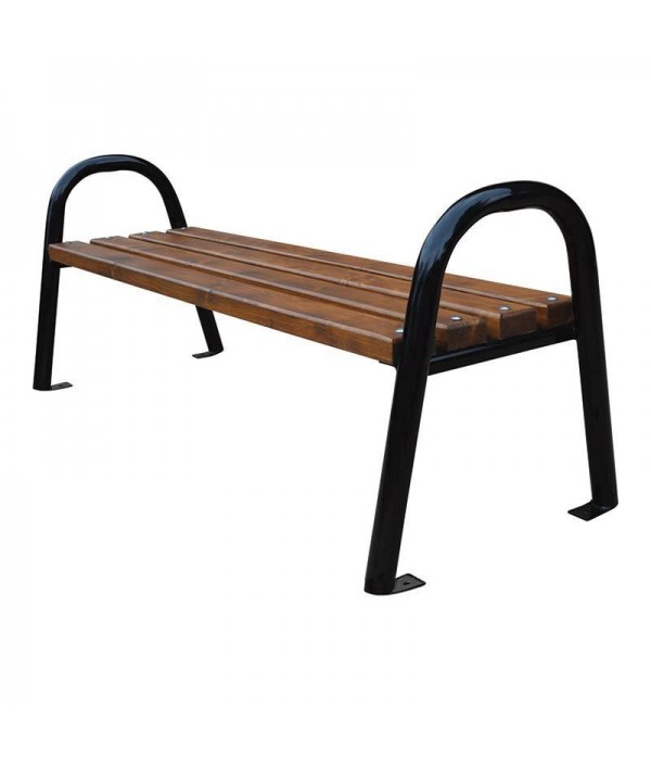 Kvalitná vonkajšia lavička bez operadiel, lavička má kvalitnú oceľovú konštrukciu, na ktorej sú primontované pravé drevené dosky.